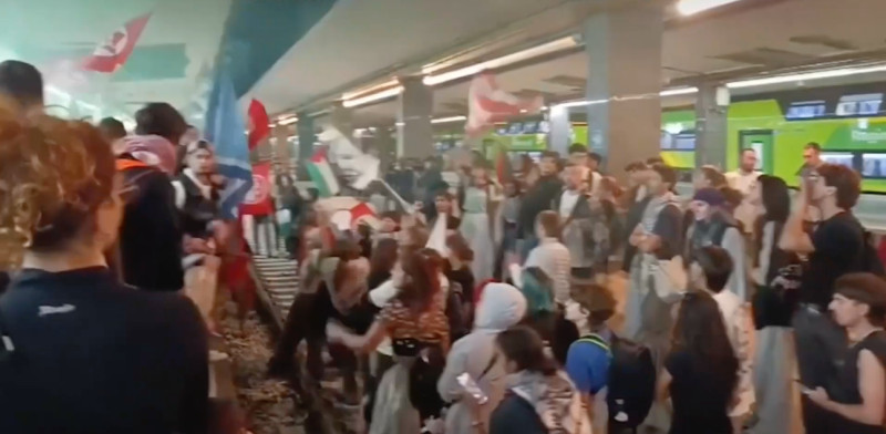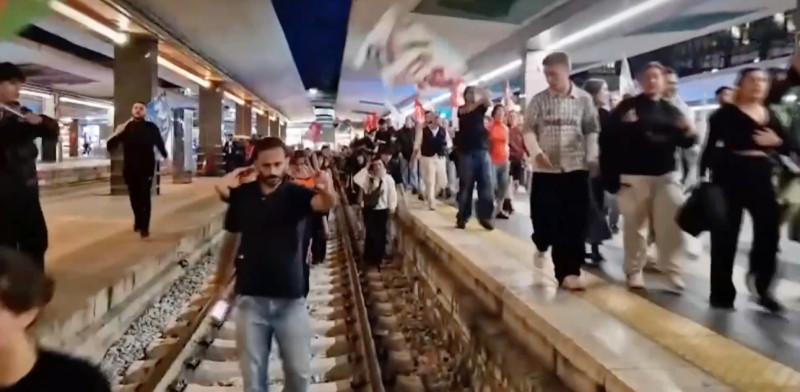 İtalya'nın başkenti Roma’da göstericiler, sloganlar atıp Filistin bayrakları sallayarak kentin ana tren garına girmeye çalıştı.