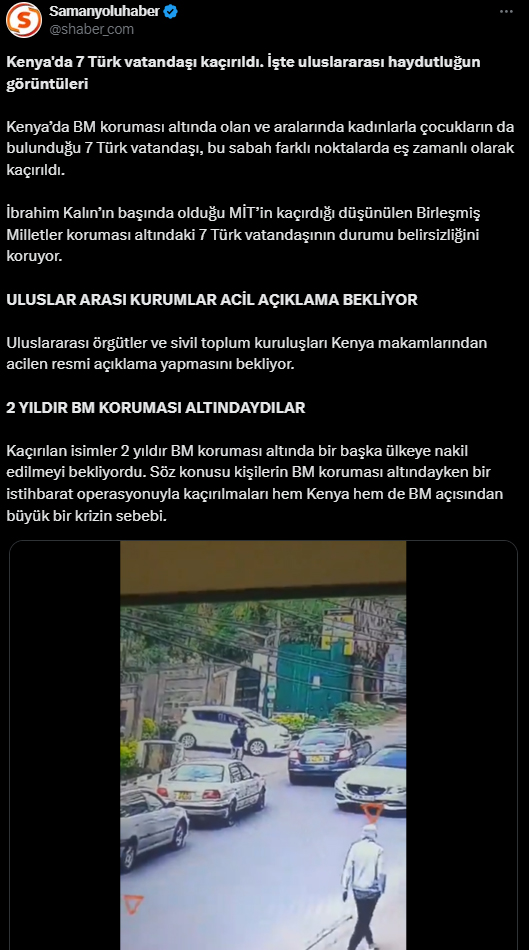 Son günlerde Türkiye medyasında, para için yeni doğmuş bebekleri öldüren çete ile bağlantısı gündem olan İbrahim Kalın'ın başkanlığındaki Türk istihbarat örgütü MİT’in kaçırdığı düşünülen ve Birleşmiş Milletler koruması altındaki 7 Türk vatandaşının durumu belirsizliğini koruyor.