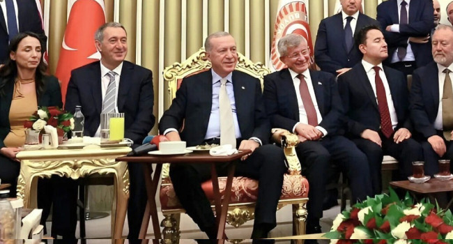 Açılış resepsiyonunda AKP'li Cumhurbaşkanı Recep Tayyip Erdoğan ile Gelecek Partisi Genel Başkanı Ahmet Davutoğlu ve DEVA Partisi Genel Başkanı Ali Babacan'ın yan yana verdiği görüntüleri sosyal medya hesabından paylaştı.