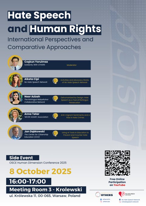 Avrupa Güvenlik ve İşbirliği Teşkilatı’nın (AGİT) Varşova’da düzenlediği 2025 İnsan Boyutu Konferansı kapsamında bugün “Nefret Söylemi ve İnsan Hakları: Uluslararası Perspektifler ve Karşılaştırmalı Yaklaşımlar” başlıklı bir panel gerçekleştiriliyor.