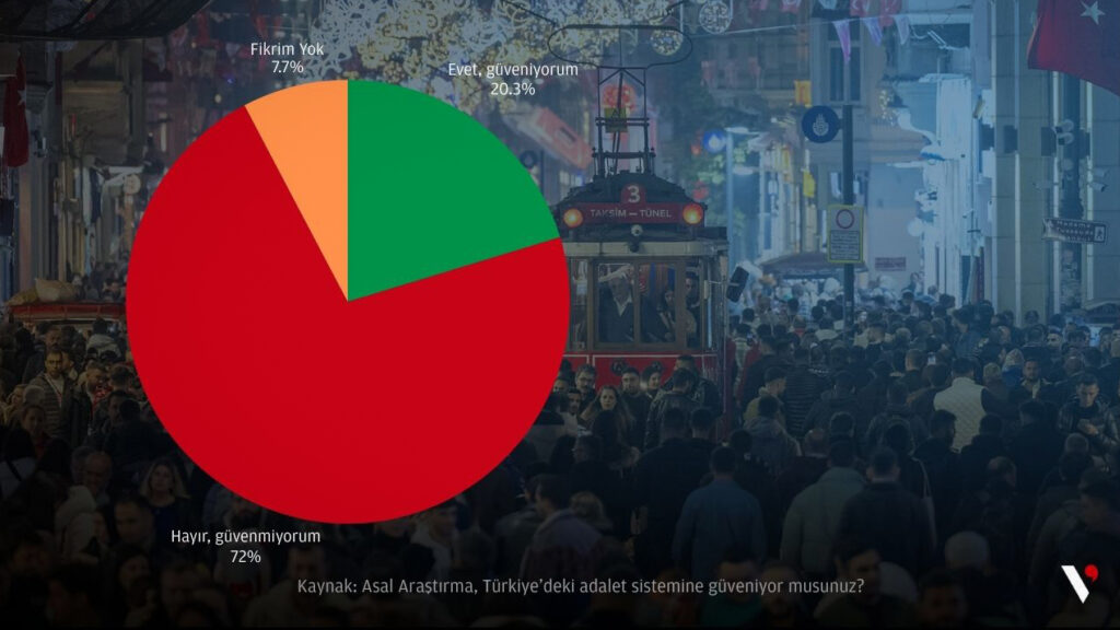 Asal Araştırma’nın Eylül 2025 anketine göre, toplumun yüzde 72’si Türkiye’deki adalet sistemine güvenmediğini belirtti. Ekonomiye güvenmeyenlerin oranıysa yüzde 64.