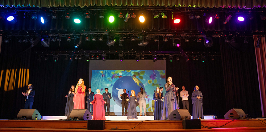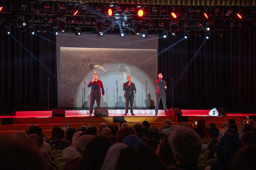Tanzanyalı Amin’in ile Almanya’dan gelen Melike’nin “Önden Giden Atlılar” performansı ise, hayatlarını bir bavula sığdırıp bilinmez diyarlara hicret eden fedakâr gönül insanlarını sembolize etti. Bu sahne, salondaki birçok Hizmet gönüllüsünü hıçkırıklara boğdu.
