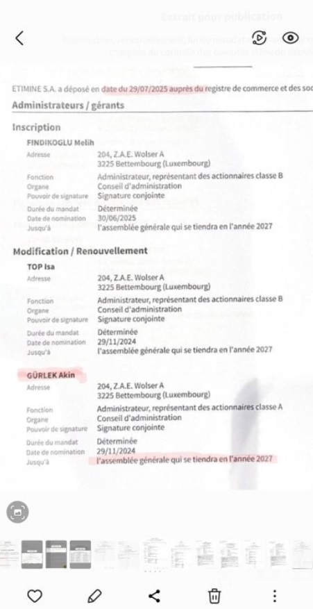 * Eti Maden, Lüksemburg’un resmi ticaret sicil gazetesine Gürlek’in yöneticiliğinin 2027 yılına kadar süreceğini bildiriyor. Bildirim tarihine dikkat: 29 Temmuz 2025.
