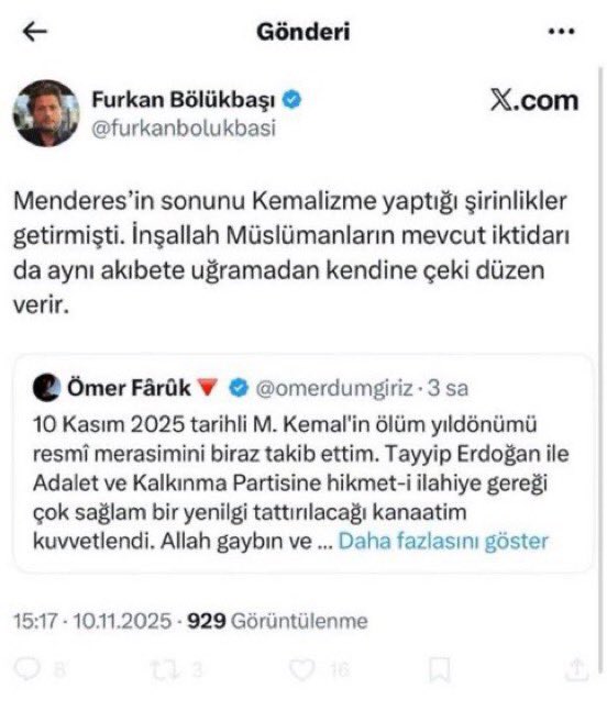 AKP yanlısı trol Furkan Bölükbaşı yaptığı paylaşım sonrası ‘Cumhurbaşkanına suikast ve fiili saldırı’ suçundan gözaltına alındı. Sulh Ceza Hakimliğine sevk edildi. Furkan Bölükbaşı tutuklandı.