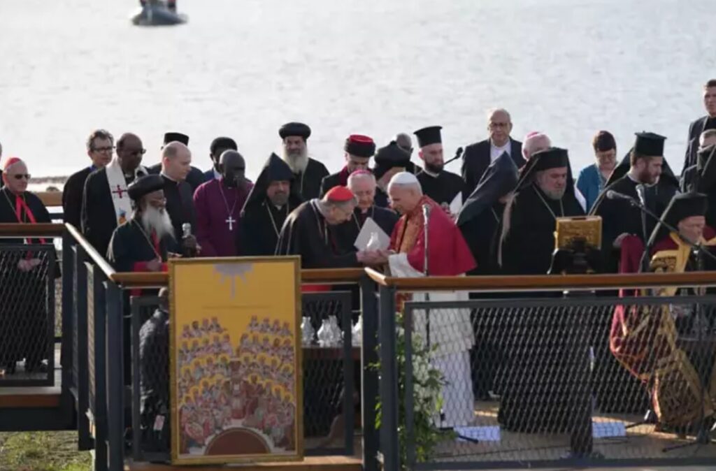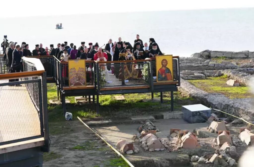 Hristiyan din adamları da Papa’yı görmek için ilçede bir araya geldi. Papa, geniş güvenlik önlemleri altında stadyumdan çıkış yapan konvoyla birlikte saat 15.30’da İznik Gölü kıyısındaki Aziz Neophytos Bazilikası’nın da bulunduğu İznik Gölü Bazilikası Ören Yeri’ne geldi.