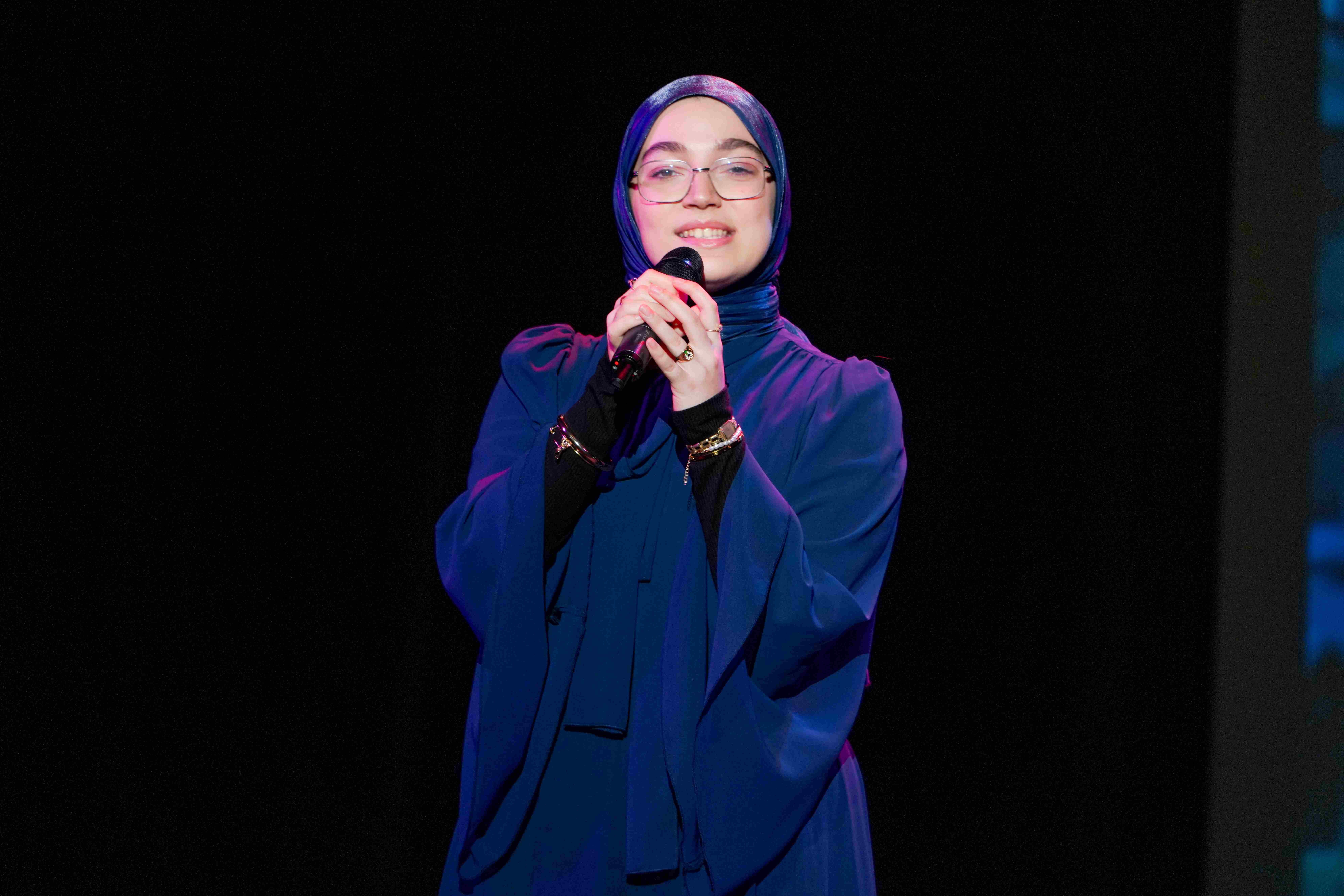 Gösteride, hicret yolculuğuna çıkan adanmış ruhların hikâyesi de dramatik sahnelerle sunuldu. Programın sonunda “Yeni Bir Dünya” adlı eser hep birlikte seslendirilerek, daha adil bir dünyanın umudu vurgulandı. Gençlerin sahnede okuduğu, “Dönersek kalleşiz” sözleri ise geceye damga vurdu.